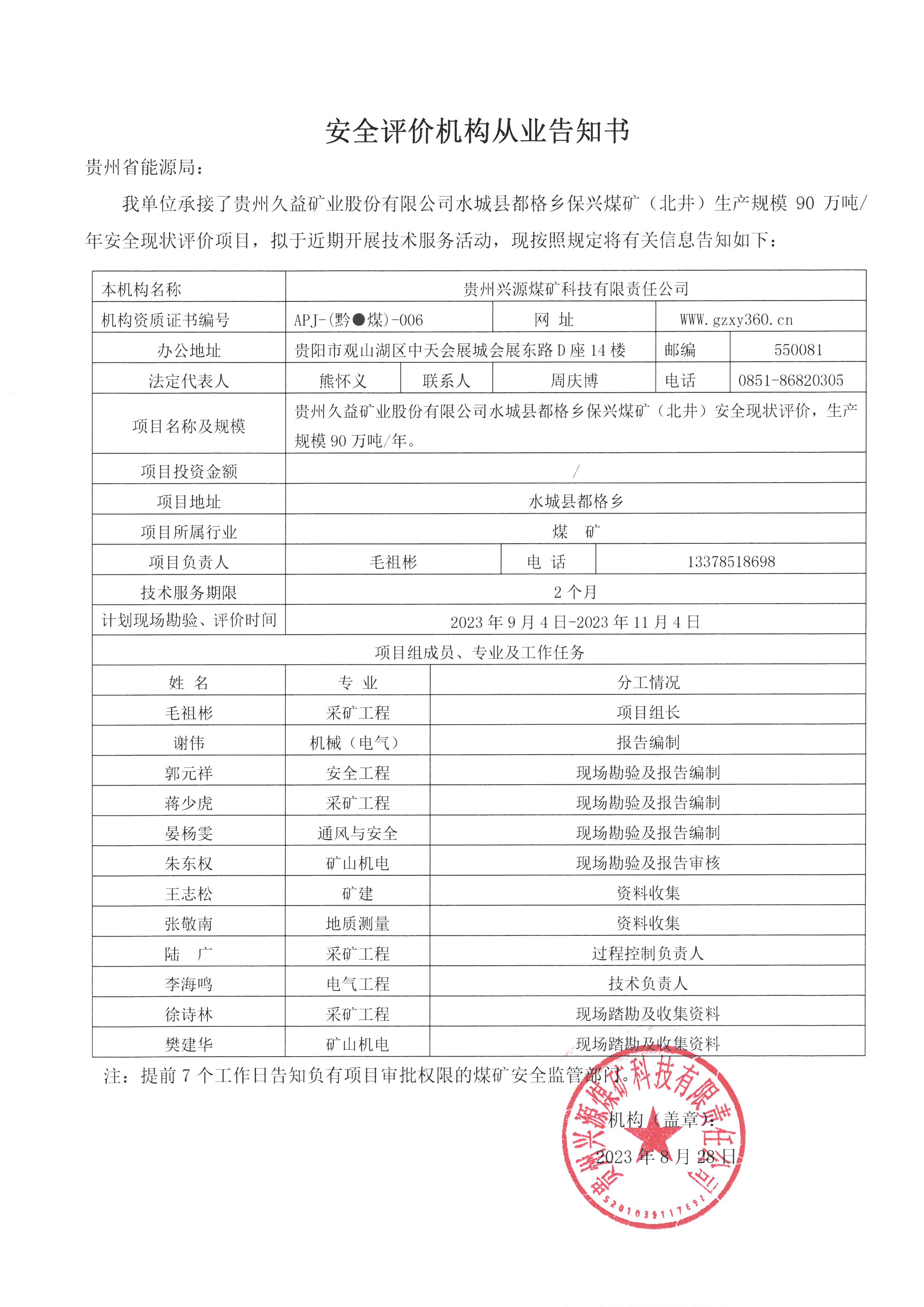 Notice of publicity