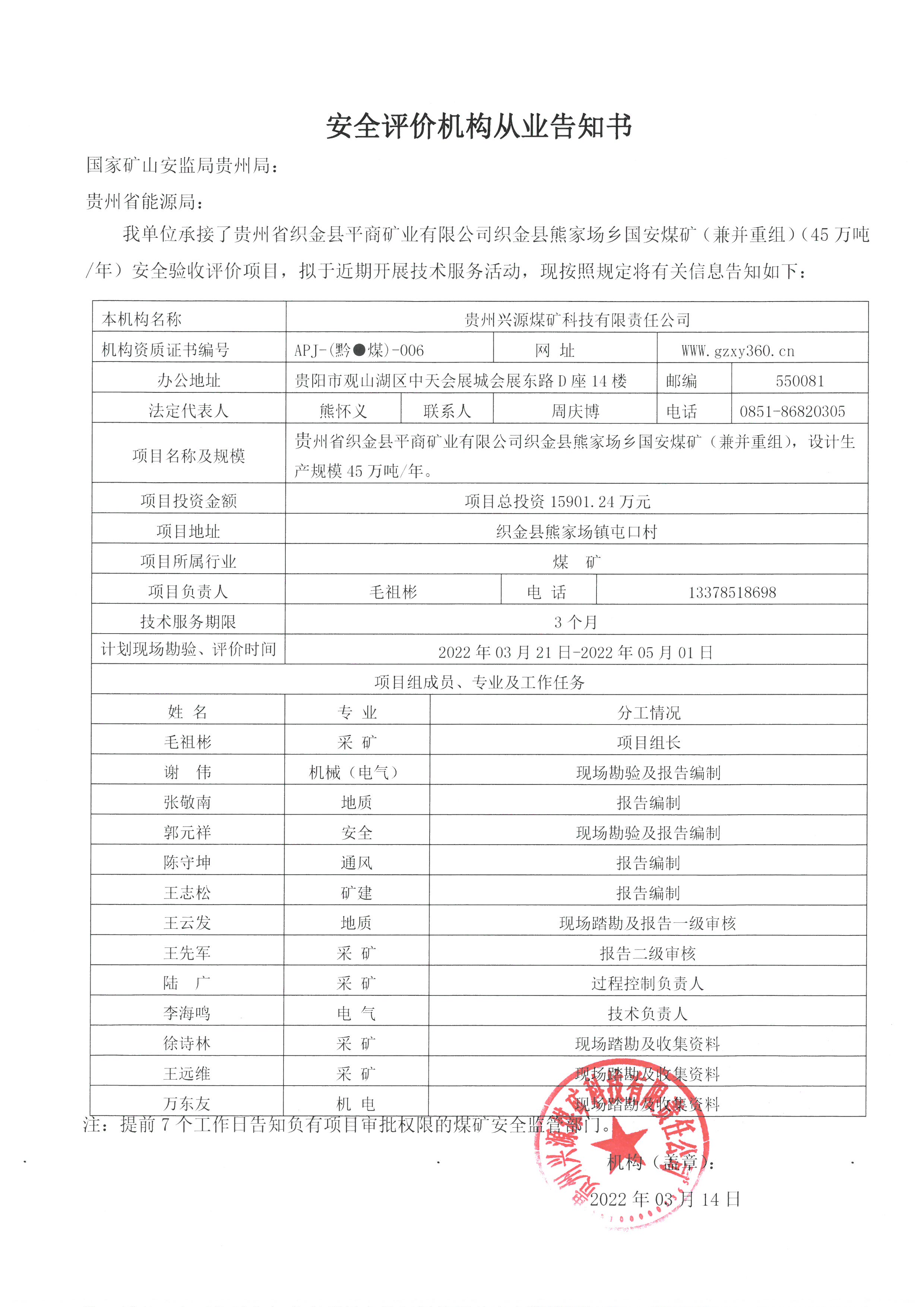 Notice of publicity