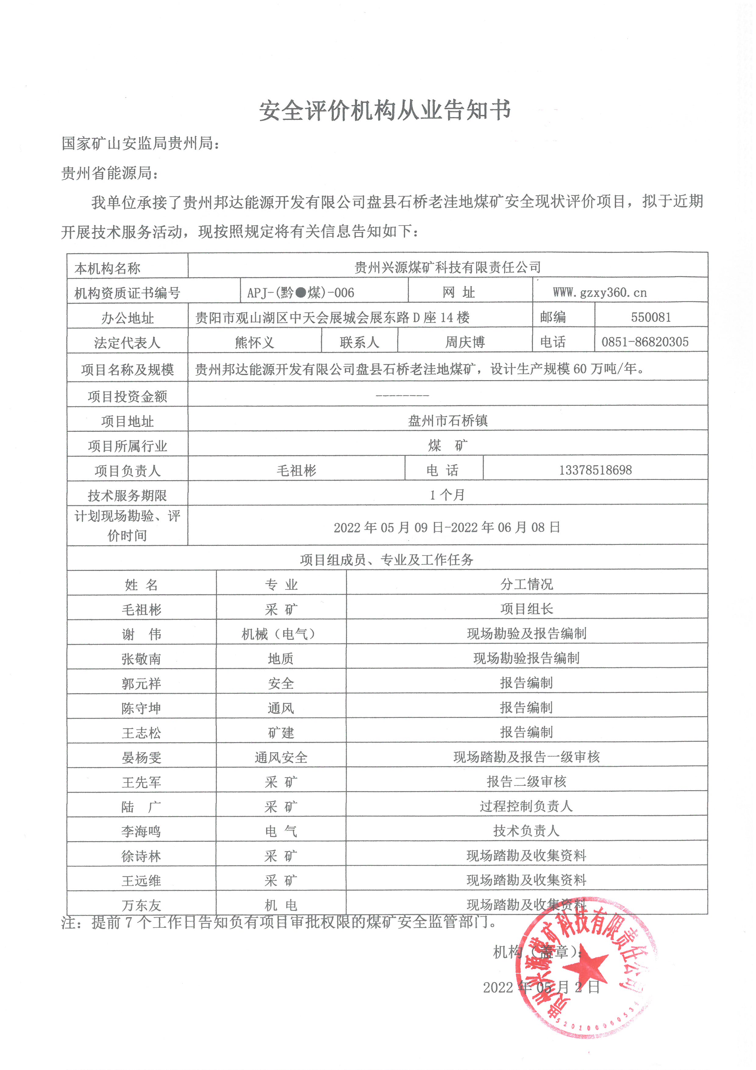 Notice of publicity